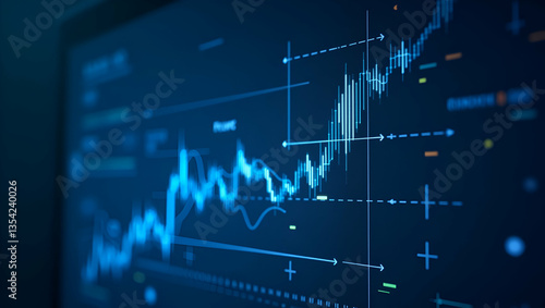 Understanding the Flat Stock Market Crash: Analyzing Economic Graphs and Diagrams in Business and Financial Reports on a Blue Technology Background