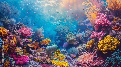 Underwater coral reef, colorful marine life, vibrant and detailed, photo realism