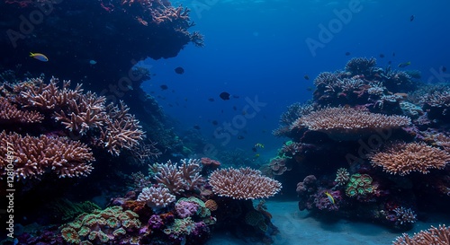 Underwater Coral Reef Scene with Tropical Fish and Vibrant Marine Life
