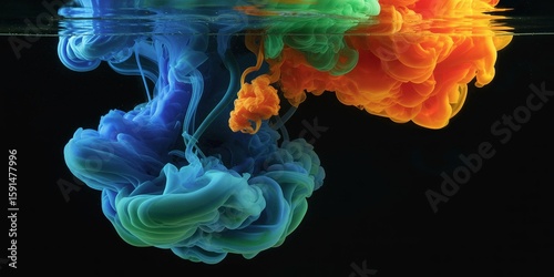 ink, water, abstract, colours, blue, orange, black, cloud, swirl, pigment, underwater, liquid, dye, texture, motion, art, artistic, design, creative, vibrant, dynamic, flow, fluid, mixing, dissolving, paint, acrylic, colourful, background, modern, contemporary, splash, dripped, wave, movement, graphic, element, illustration, macro, closeup, detail, studio, shot, nobody