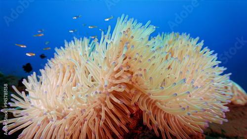 Underwater photo of anemone at a coral reef. From a scuba dive in Bali, Indonesia.