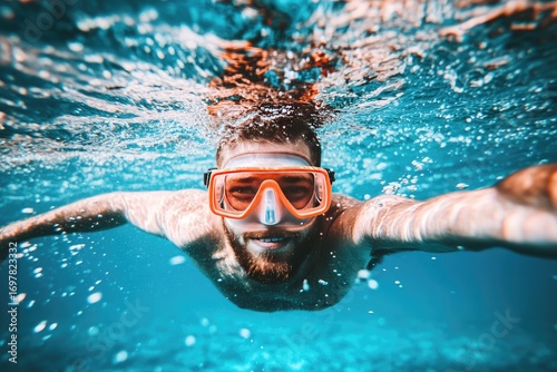 underwater, snorkeling, man, aqualung, diver, ocean, sea, swimming, happy, smile, vacation, summer, travel, holiday maker, ocean life, coral, blue, water, beach, vacationer, portrait, holiday, diving, fun, enjoyment, relaxation, leisure, tour tourism, traveler, exploration, activity, sport, nature, photo, image, person, bearded, water, breath, coral reef, sun, view, clearwater