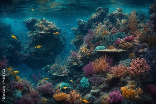 underwater, view, coral reef, fish, ecosystem, array, swimming, colourful, formation, marine life, biodiversity, underwater photography, ocean, aquatic, tropical, coral, generative, ai
