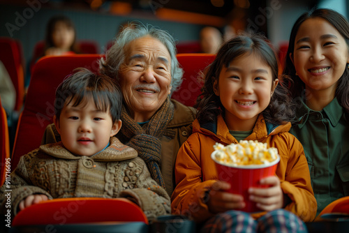 Une famille heureuse composée d'une mère, d'un père, et de leurs enfants souriants. Le groupe, incluant un garçon, une fille, et un jeune frère, passe du temps ensemble, montrant des liens affectueux