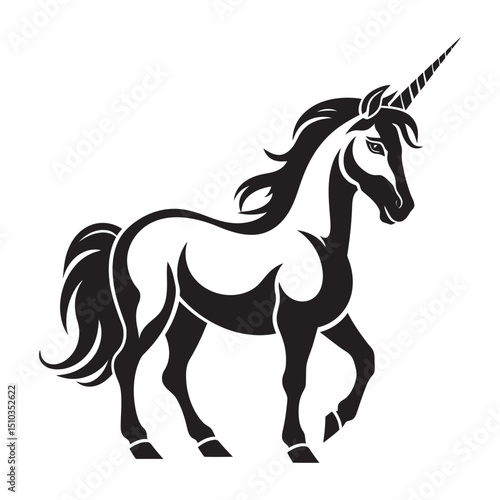 unicorn, animal, fairy tale, illustration, fantasy, vector, imagination, outline, no people, horned, black-and-white, horse, tail, cartoon, white, black, character, white background, graphic, horizontal, magic, mammal, mascot, mythology