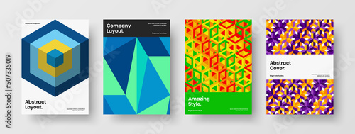Unique mosaic shapes corporate brochure layout set. Isolated front page A4 vector design template composition.