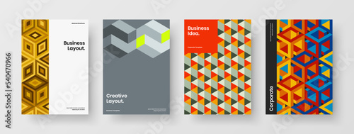 Unique poster vector design illustration collection. Modern mosaic hexagons booklet template bundle.