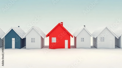 Unique Red House Among White Houses Representing Market Choices for Real Estate and Investment Opportunities