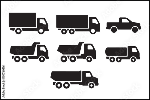vehicle, transport, delivery, cargo, heavy, nobody, isolated, black, shape, graphic, design, symbol, icon, vector, silhouette, illustration, set, unique, various, different, minimalist, modern, clean, outline, logistic, commercial, road, trailer, haul, utility, freight, transportation, delivery vehicle, heavy duty