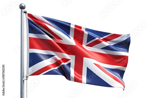 United Kingdom flag waving on pole isolated on white background
