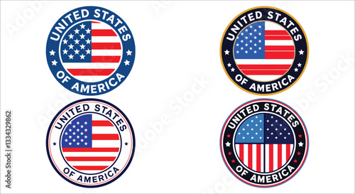 United states of America flag seal badge vector design. United states of America round badge vector. American flag circle emblem patriotic stamp vector. United states of America circular flag icon