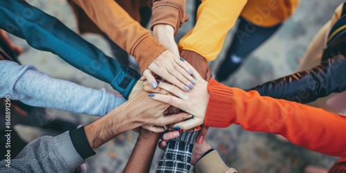 hand, oneness, collaboration, diversity, group, together, support, teamwork, community, connection, strength, power, solidarity, humanity, people, friendship, togetherness, trust, hope, inclusion, acceptance, respect, tolerance, understanding, love, harmony, peace, equality, human rights, empowerment, inspiration, motivation, optimism, positivity, joy, happiness, success, achievement, celebration, colourful, sweater, closeup, overhead, topview