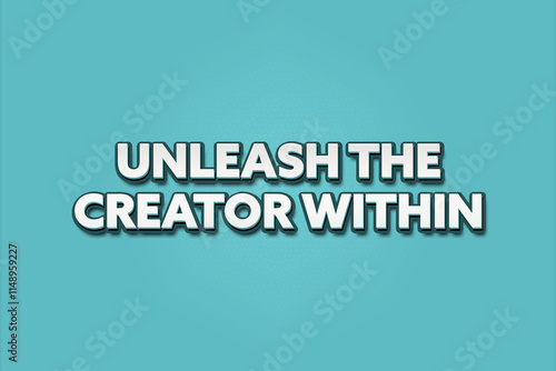 Unleash the Creator within. A Illustration with white text isolated on light green background.