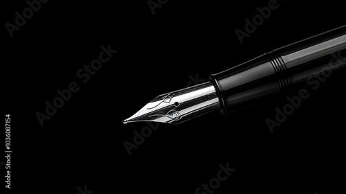 Unleashing Creativity: A Striking Mockup of a Black Pen Resting on a Sleek Black Background