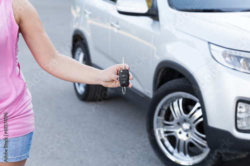 adult, attractive, automobile, buyer, buying, car, caucasian, contemporary, driver, driving, female, girl, holding, insurance, key, modern, new, 1, only, people, person, rental, standing, suv, transport, transportation, vehicle, white, woman, young, unrecognizable, rent, alarm, auto, control, finger, hand, human, ignition, remote, black, security, closeup, equipment, man, owner