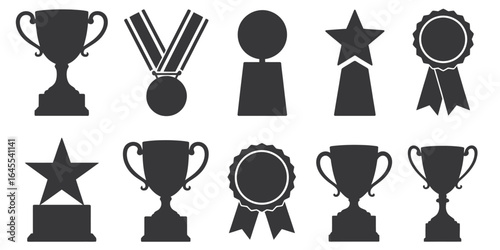 UntitledVector art of collection of various trophy and award icons, isolated on white background, representing achievement, success, and recognition in different fields and competitions