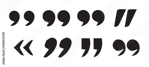 uotes icon vector set. Quotemarks outline, speech marks, inverted commas or talking marks collection.Talk bubble speech icon. Quotation signs isolated on white background. Vector illustration eps 10.
