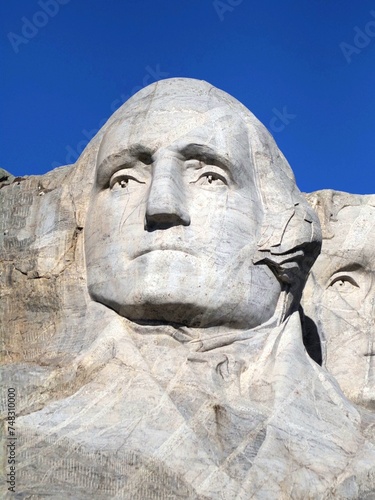 Up Close of George Washington First President of the United States of America at Mount Rushmore South Dakota USA