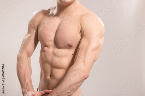 Upper body close up young man bodybuilder