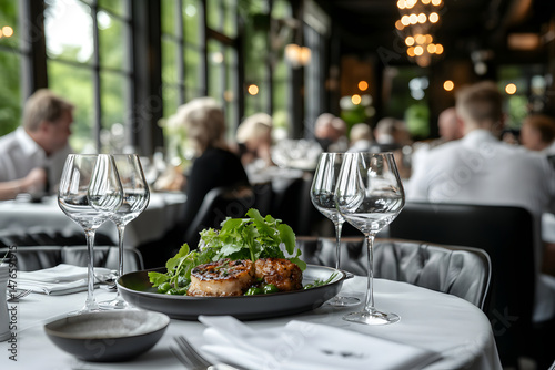 food, eatery, lunch, upscale, dining, epicure, elegant, presentation, table, setting, culinary, life events, glassware, ambience, menu, herb, seasonal, ingredient, atmosphere, main, course, indoor, soft, lighting, wine, salad, pleasure, stylish, culture, hospitality, wine, goggles, special, tasteful, design, modern, intimate, gastronomy, delight, generative, ai