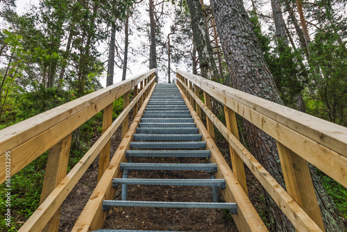 forest, staircase, stair, wooden, metal, step, upward, nature, hiking, outdoors, travel, pine, wilderness, progress, eco, landscape, journey, ascent
