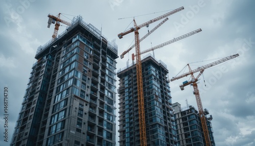 Urban Construction: Skyscrapers Rising Under Cloudy Skies
