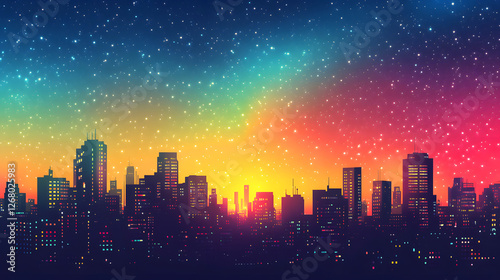 city, starry sky, night view, building, gradient, night sky, gorgeous, colours, silhouette, night, background, neon, scenery