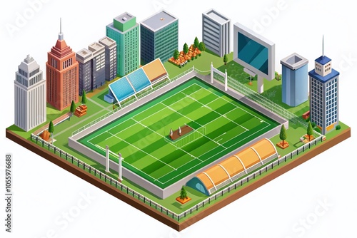 Urban Exploration Football Field Isometric View with Isolated Elements for Creative Projects