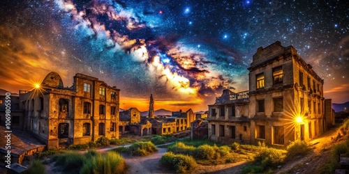 urban, exploration, photo, night, star, abandoned, city landscape, mystical, celestial, gold, atmosphere, contrast, decay, vibrant, dynamic, angle, captivating, depth, allure, environment, structure, scene, rich, colours, illuminated, landscape, aesthetic, unique, visual, dreamlike, creative, urban decay, night time, skyline, tranquil, enchanting, magical, serene, atmospheric, mystery, beauty, scenic, iconic, shadow, light, night sky, starry, adventure