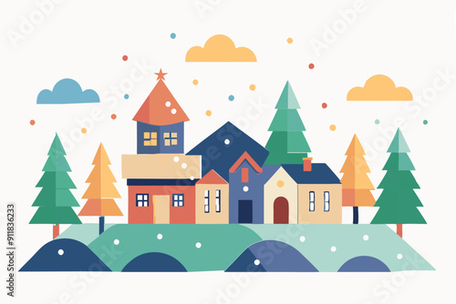 landscape, illustration, urban, banner, vector, design, flat, city, template, geometric, background, tree, town, city landscape, future, environment, home, nature, street, house, skyline, concept, sky, cloud, scene, building, pattern, hill, abstract, card