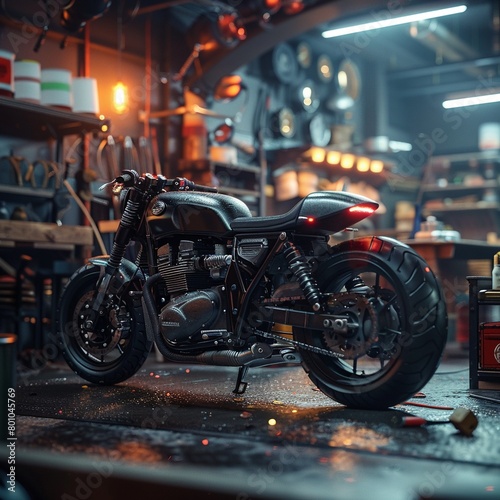 Urban motorcycle garage that trades repair services for cryptocurrency, modern barter system