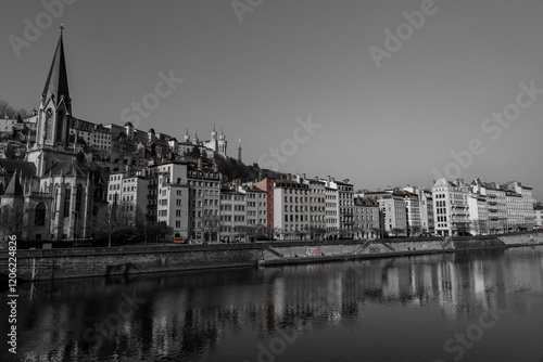 Urban scene with buildings around the River Saone, Lyon, France