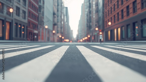Urban Serenity: Figure Waiting at Midday Crosswalk Amid City Bustle - Cinematic Ultra-Detailed Image