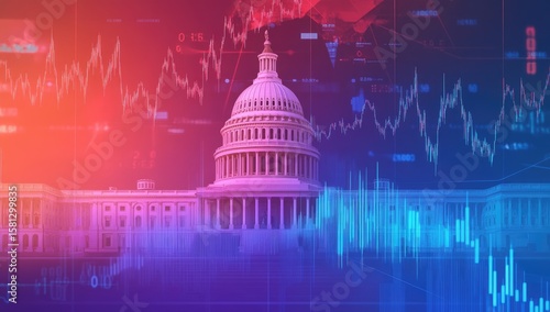 capitol, building, government, finance, datum, chart, graph, stock, market, economy, analysis, trend, investment, growth, decayed, red, blue, pink, purple, digital, overlay, mixed, graphic, abstract, political, policy, decision, future, impact, performance, projection, number, digit, indicator, capitalism, democracy, congress, power, influence, united, state, washington, dc, governance, legislation
