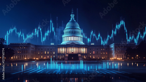 US Capitol, Rising Bar Lines of Stock Market US Congress andBusiness Graph Stock Market Design US, Congress Design Beautiful Background of Capitol in America Financial Market, State Building