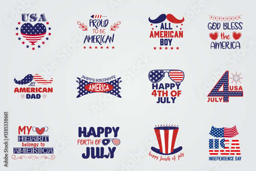 USA Independence Day Vector Quotes Patriotic 4th of July Typography & Clipart Bundle