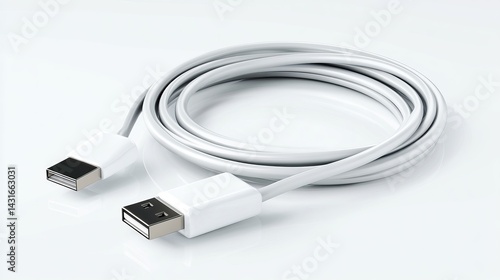 USB cable 3D render isolated on white background Charging accessory in modern vector style