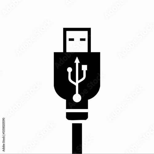 cable, connector, vector, usb, technology, connection, datum, transfer, interface, plug, input, output, electronic, device, digital, wire, cord, hardware, computer, system, contraption, modern, information, communication, network, electricity, power, symbol, signs, icon, graphic, design, illustration, silhouette, black, white, simple, minimalist, abstract, shape, form, element