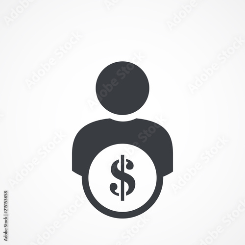 User Icon - Dollar, Money, Business, Currency Glyph illustration. Businessman silhouette with dollar sign. User earnings icon