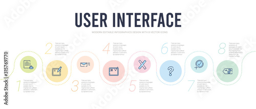 user interface concept infographic design template. included delete button, round add button, round help button, round delete tick box, email envelope icons