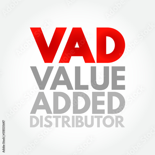 VAD Value Added Distributor - offers differentiating services and solutions that provide additional benefits to their clients, acronym text concept background