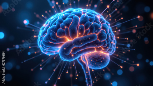 brain, nerve cell, electron, health, technology, illustration, medicals, mental health, therapy, innovation, neurology, nerve, treatment, epilepsy, depression, blue, orange, star, anatomy, research, discovery, conceptual