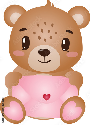february 14, bear, teddy, toy, nubes, love, animal, cartoon, vector, teddy bear, illustration, valentine, brown, baby, red, gift, holiday, drawing, cute, smiling, isolated, art, fun, smile, card, sitting