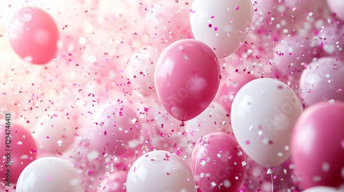 valentine, card, balloon, pink, confetti, celebration, background, party, woman, festive, white, decoration, holiday, birthday, romantic, anniversary, march, design, event, floating, helium, fun, sparkle, joy, happiness, glistering, layout, minimal, modern, stylish, elegant, glamour, seasonal, greeting