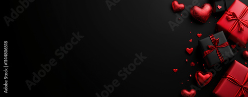 valentine, day, banner, gift, heart, love, black, topview, box, february, surprise, red, white, background, romantic, celebration, holiday, balloon, decor, festive, present, sweet, three-dimensional, couple, special, event, anniversary, joy, tenderness, affection, design, decorative, romance, beautiful, happiness, emotion, party, atmosphere, greeting, card, glossy, light, pink, cheerful, wrapping, wedding, soft, theme, passion