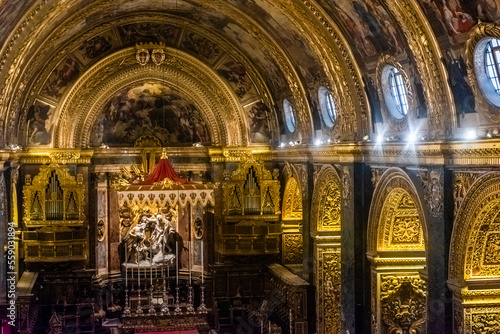 Valletta, Malta, 22 May 2022: Golden interior of St John's Co-Cathedral