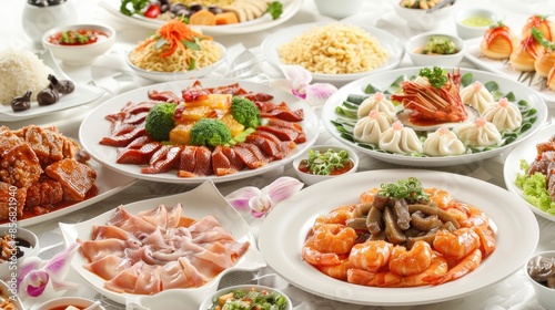 Variety of Chinese banquet dishes with flavorsome taste and vibrant colors