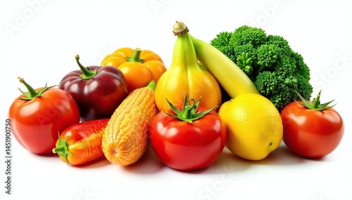 Variety of organic fruits & vegetables isolated on white, farm, fresh