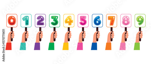 Various Cartoon Hands Holding Numbers