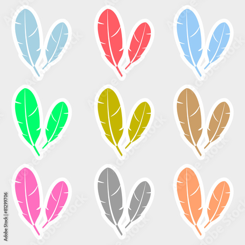 feather, symbol, colours, sticker, blue, red, green, black, orange, pink, light, colourful, bird, lightweight, breeze, animal, cygnet, write, instrument, ink, icon, vector, illustration, design, graphic, object, decoration, shadow, peace